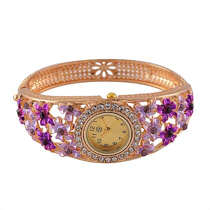Strada Austrian Crystal Enamelled Bangle Watch - Purple