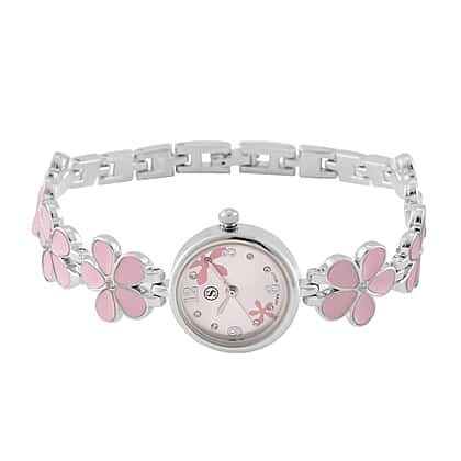Add charm to your accessory collection with the Strada Floral Strap Watch. This delightful timepiece showcases an elegant white dial featuring a unique sunshine texture and playful floral pattern, perfect for brightening any outfit. Sparkling white crystals enhance the design, making it an eye-catching focal point for casual gatherings or home relaxation. The durable alloy strap, adorned with pink enamel detailing, complements the overall aesthetic while ensuring comfort. Water-resistant and powered by a dependable Japanese battery, this watch effortlessly combines style and functionality, making it an essential addition to your daily wear.