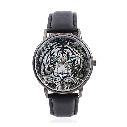 STRADA Japanese Movement 3D Tiger Head Dial Water Resistant Watch with Black Colour Strap