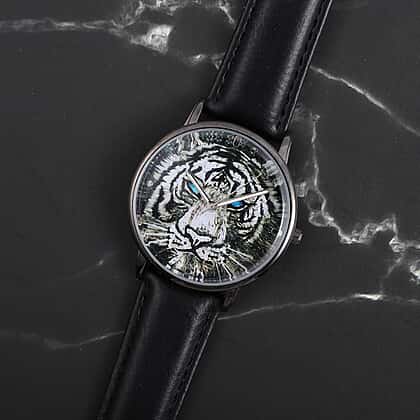 This charming and attractive 3D Tiger Head dial watch from the Strada collection will add to your watch collection. This timepiece has a Japanese Quartz movement that keeps accurate time. This black textured strap watch pairs well with a wide range of outfits. The irritant-free strap with a buckle clasp fastening provides a secure fit around your wrist. This lovely timepiece is built to prevent water from entering and extending its life.