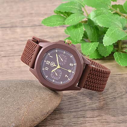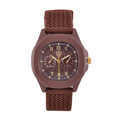 STRADA Japanese Movement Analog Watch With Brown Silicone Strap