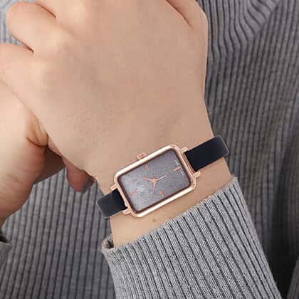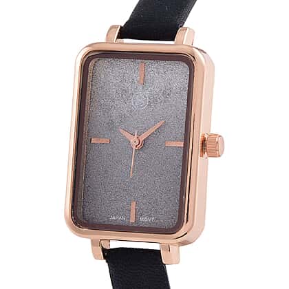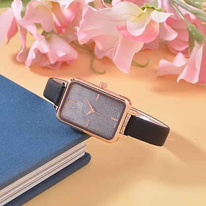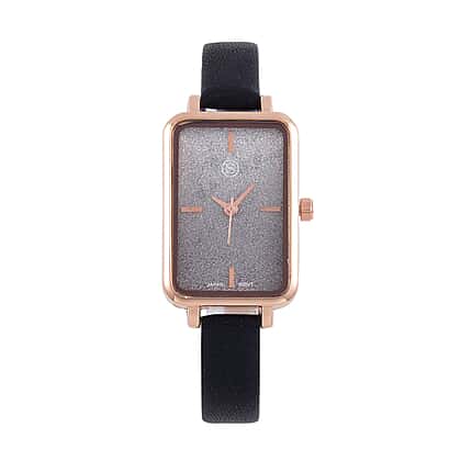 STRADA Japanese Movement Black Stardust Dial Water Resistant Ladies Watch With Black Leatherette Strap