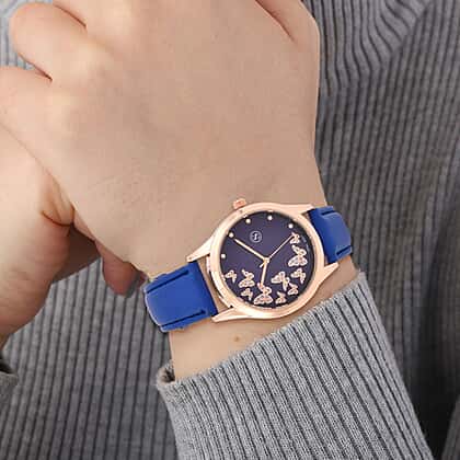 STRADA Japanese Movement Butterfly Pattern Water Resistant Watch with Dark Blue Strap