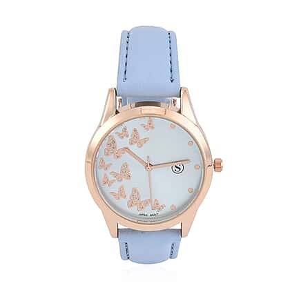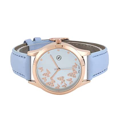 STRADA Japanese Movement Butterfly Pattern Water Resistant Watch with Light Blue Strap