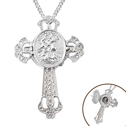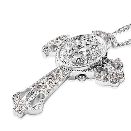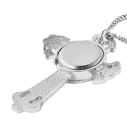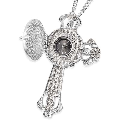 STRADA Japanese Movement Crystal Studded Hollow Cross Locket Watch with Chain (Size 29 with 3 inch Extender)