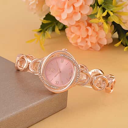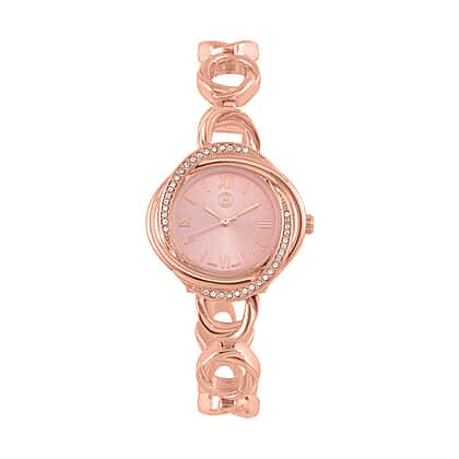 STRADA Japanese Movement Crystal Studded Pink Dial Water Resistant Watch in Rose Gold Tone
