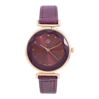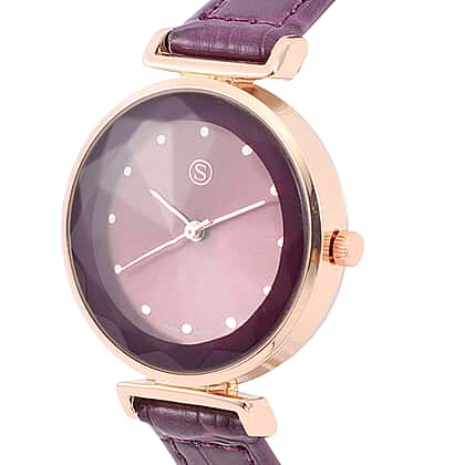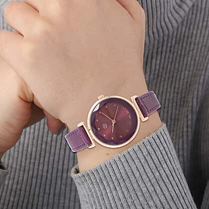 STRADA Japanese Movement Water Resistant Watch with Faux Leather Strap - Purple