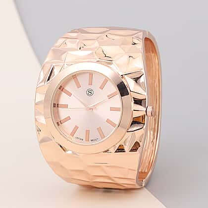 STRADA Japanese Movement Rose Gold Dial Bangle Watch in Rose Gold Tone