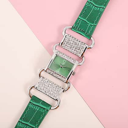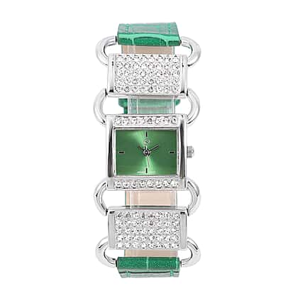 STRADA Japanese Movement Crystal Studded Water-Resistant Watch - Green