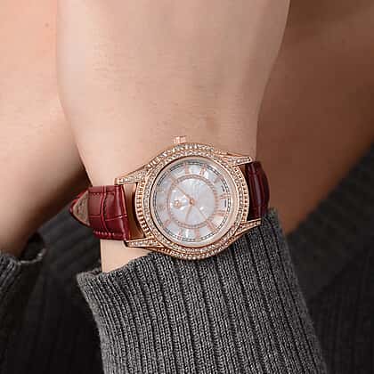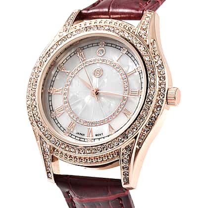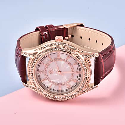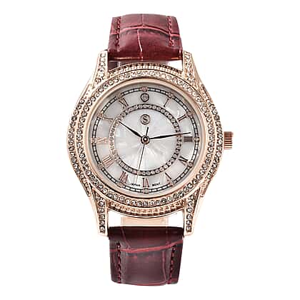 Strada Japanese Movement Women's Water Resistant Watch with Burgundy Strap
