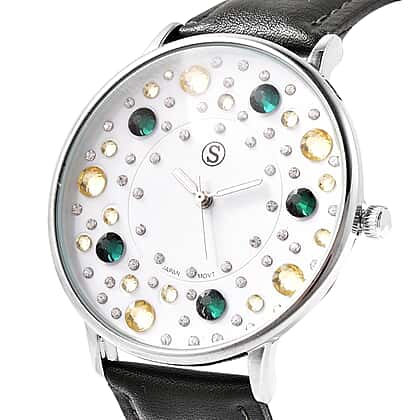 STRADA Japanese Movement Multi Colour Austrian Crystal Studded Water Resistant Watch with Green Colour Strap