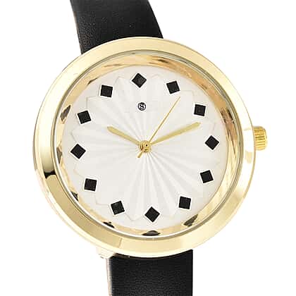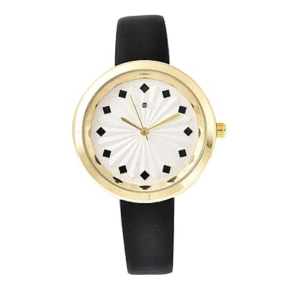 STRADA Japanese Movement Sunburst Effect Dial Water Resistant Watch with Black Colour Strap