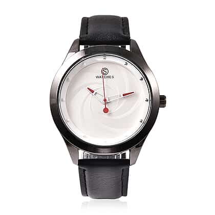 STRADA Japanese Movement Watch with Black Strap in Silver Tone