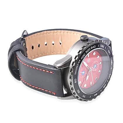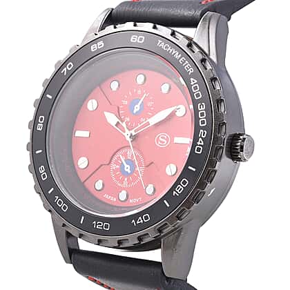 STRADA Japanese Movement Water Resistance Sporty Look Watch with Black Strap and Red Dial