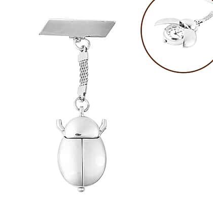 STRADA Japanese Movement Water Resistant Beetle Shaped Pocket Watch in Silver Tone
