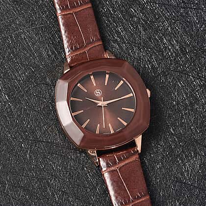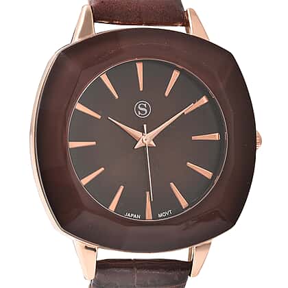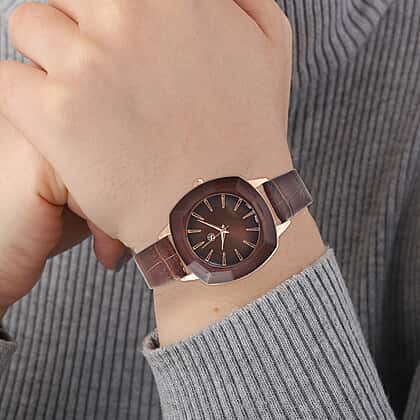 STRADA Japanese Movement Water Resistant Watch with Dark Brown Faux Leather Strap - Dark Brown