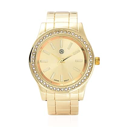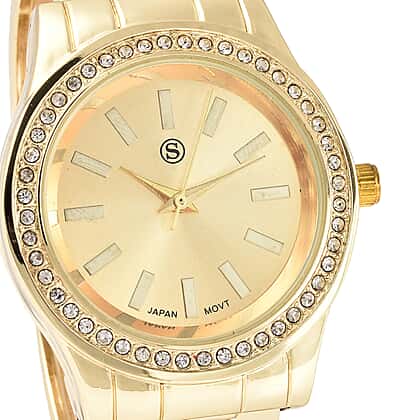 Features12-Hour Dial, Crystal Studded, Durable And Hypoallergenic, Goldtone Plated, LightWeight, Water Resistant