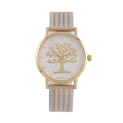 STRADA Japanese Movt.Tree of Life Dial Water Resistant Watch in Gold Tone with Stainless Steel Mesh Strap