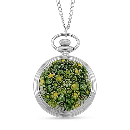 Step into sophistication with this Murano-style pocket watch, designed to add a touch of artistry to your everyday look. The alloy case is finished with PNP steel plating, while the dial features a false mechanical design and easy-to-read numerals. A 36-inch iron chain complements the design, and the green Murano glass back cover adds a refreshing pop of colour. Powered by Japan PC21S movement and LR626 battery, it offers 3ATM water resistance for peace of mind. For women seeking individuality and elegance, this watch is a statement piece.