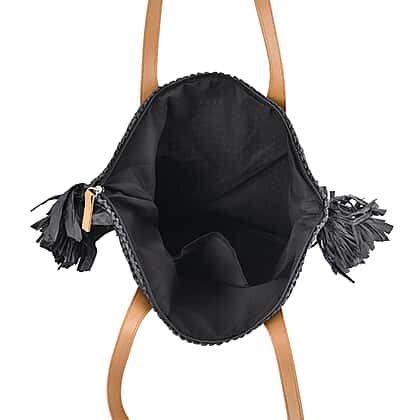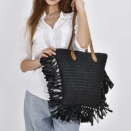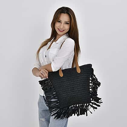 Step into eco-conscious fashion with the Paper Straw Tote Bag with Tassel. Crafted from sustainable paper straws, this bag combines style with sustainability. The tassel detail adds a touch of bohemian flair, making it a perfect accessory for summer adventures. With its spacious interior and sturdy handles, it effortlessly carries your essentials while adding a chic, beachy vibe to your look.