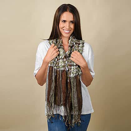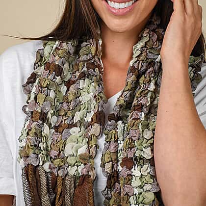 Stretch Smocking Scarf with Tassels in Green and Multi Colour