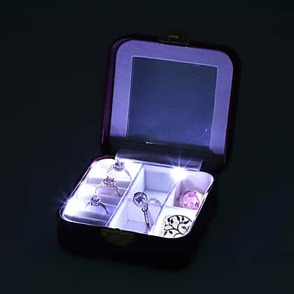 Stylish LED Light Mirror Jewellery Box wih Lock (Size 10x10x5 Cm) - Burgundy