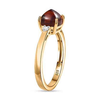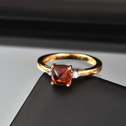 Sugar Loaf Cut Madeira Citrine & White Zircon Solitaire Ring in Yellow Gold Overlay Sterling Silver 1.38 Ct.