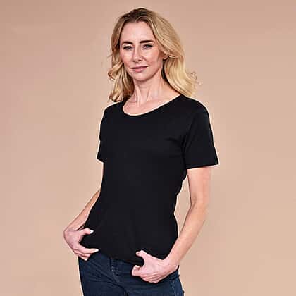SUGARCRISP 100% Cotton Short Sleeve Rib TShirt (Size 10) - Black