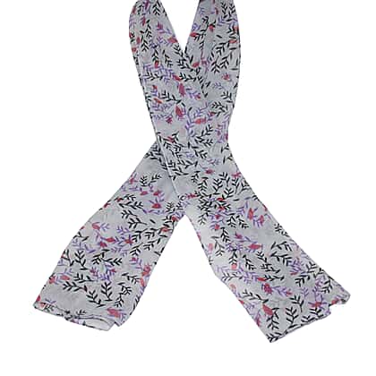 SUGARCRISP Chiffon Grey, Red and Purple Floral Printed Scarf (152x45cm)
