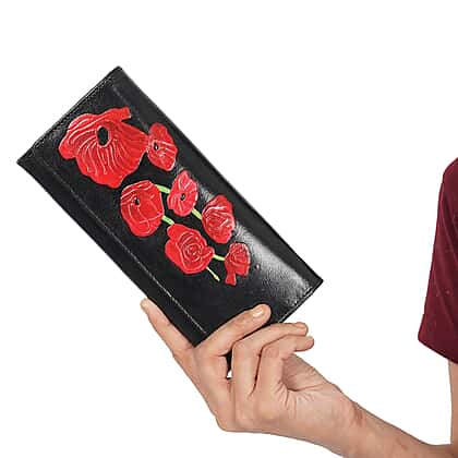 SUKRITI 100% Genuine Leather RFID Wallet (Size 21.59x11.43cm) - Black