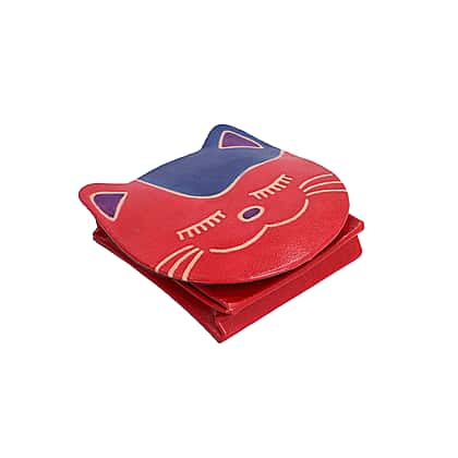 SUKRITI 100% Genuine Leather Closed Eye Smiling Cat Coin Pouch (8.5x8cm) - Apple Green, Red and Pink