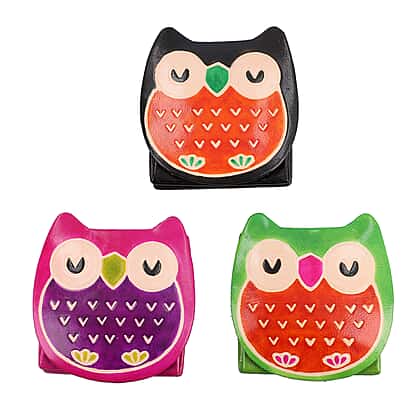 SUKRITI 100% Genuine Leather Sleeping Owl Coin Pouch (7x8cm) - Black, Pink and Green