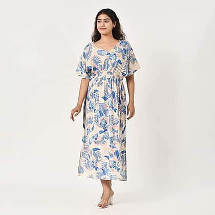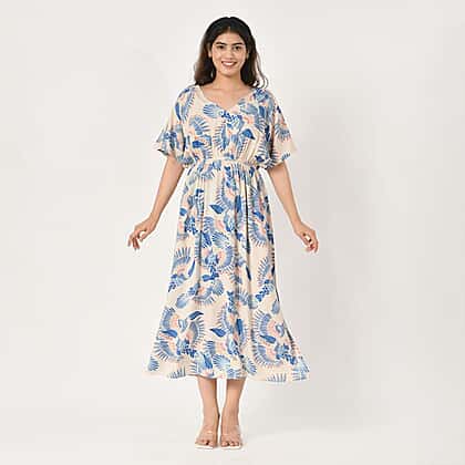 Tamsy Viscose Printed Dress (Size 128x1 cm) - Ecru & Black