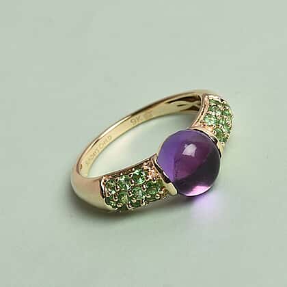 Sundays Child - 9K Y Gold AAAA Zambian Amethyst and Tsavorite Garnet Ring 3.00 Ct.