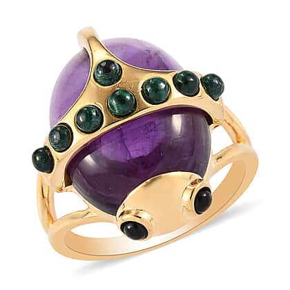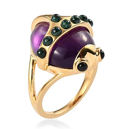 Sunday's Child Amethyst with Boi Poi Black Spinel Bettle Ring in 14K Gold Plated Sterling Silver 11.00 Ct.
