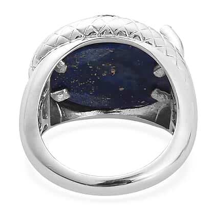 Sunday's Child Lapis Lazuli and Boi Ploi Black Spinel Serpent Ring in Platinum Plated Sterling Silver 11 Ct Silver Wt. 7.50 gms