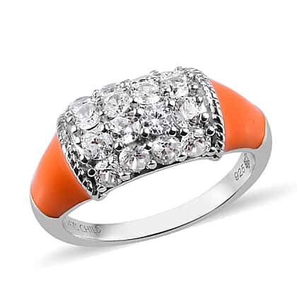Sunday's Child Natural Cambodian Zircon Enamelled Ring in Platinum Plated Sterling Silver 1.25 Ct., Silver Wt. 3.98 gms