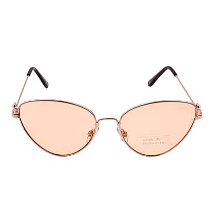 These stylish and long-lasting women's sunglasses from the Designer Inspired Sunglasses line will be your go-to accessory. These rose gold polyurethane sunglasses feature a feminine cat-eye style that enhances your appeal while shielding your eyes from harmful UV rays. The frame is precisely crafted from metal material to ensure its strength and lifespan.