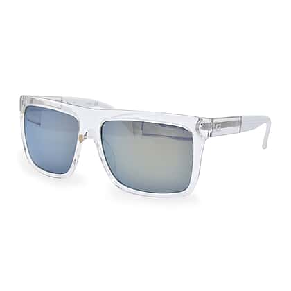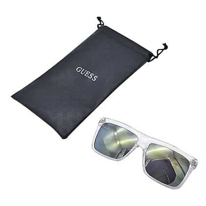 GUESS Square Clear Sunglasses With Green Mirror Lenses
