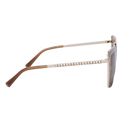 Square Metal Sunglasses With Brown Lenses and Metal Finest CZ Encrusted Temples