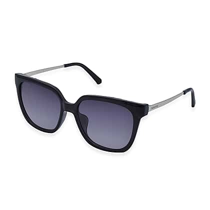 Finest CZ Women's Black Square Sunglasses With Metal Temples