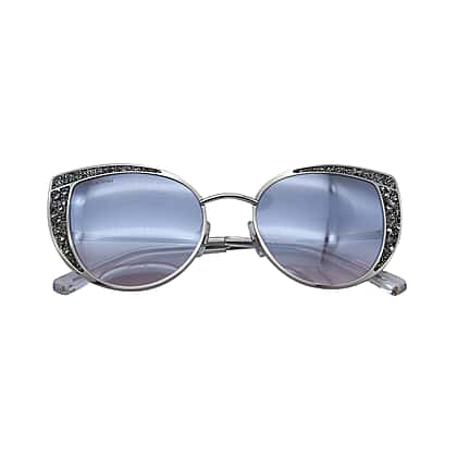 Womens Cat Eye Sunglasses with Silver Colour Crystal Encrusted Lenses