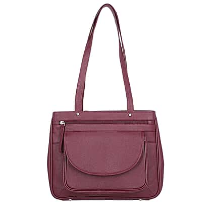 Super Soft 100% Genuine Nappa Leather Multi-Compartment Shoulder Bag in Burgundy (29x7.5x23cm)