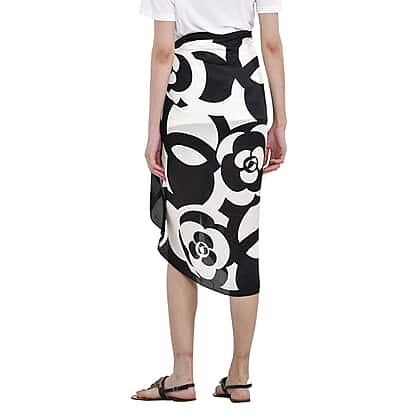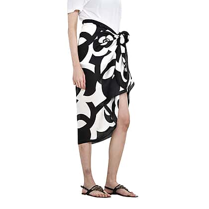 Super Soft Large Satin Irregular Pattern Sarong-Scarf (Size 180x87 cm) - Black & White