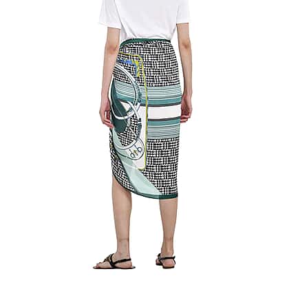 Super Soft Large Satin Italian Print Sarong-Scarf (Size 174x87 cm) - Black & Green