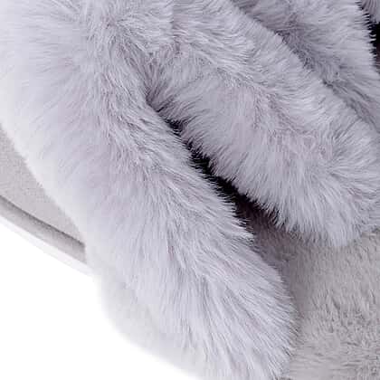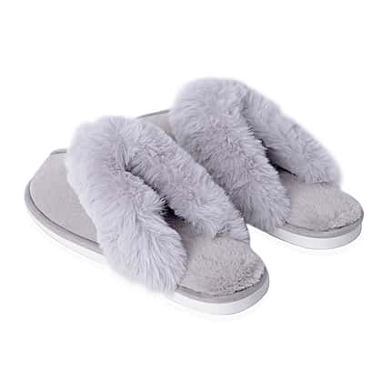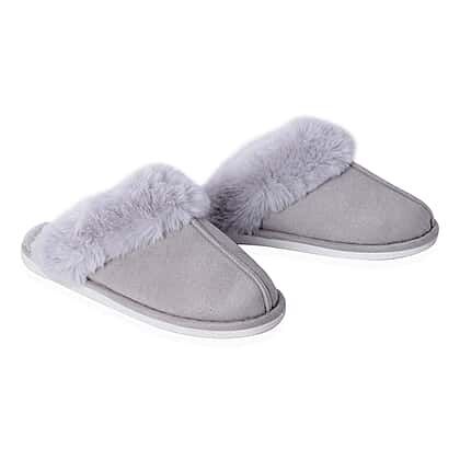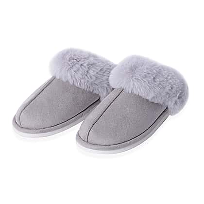 Super Soft Suede Faux Fur Slippers in Grey Colour