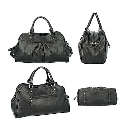 Super Soft Tote Handbag with Detachable Shoulder Strap and Zipper Closure (Size 39.5x13x23cm) - Black