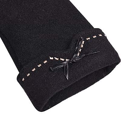 Super Soft Winter Cashmere Gloves with Bowknot - Black