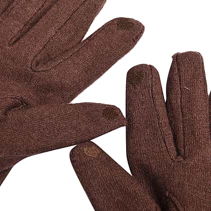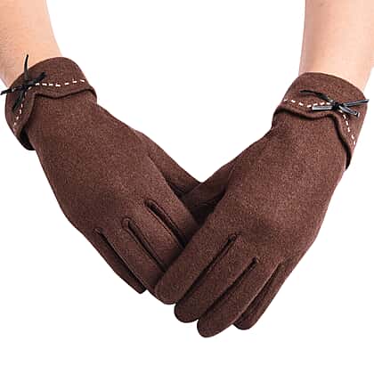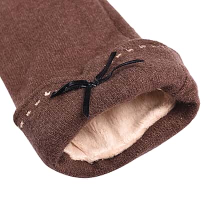 Super Soft Winter Cashmere Gloves with Bowknot - Brown