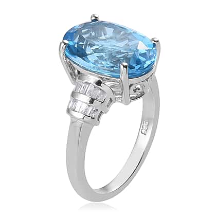 Swiss Blue Topaz and Diamond in Platinum Overlay Sterling Silver Ring 7.35 Ct